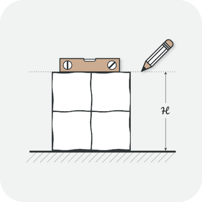 2. Mark your wall with a leveled line at the height of the 1st row of tiles to mark where the top of your tile will line up to.