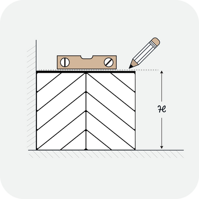 2. Mark your wall with a leveled line at the height of the 1st row of tiles to mark where the top of your tile will line up to.